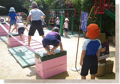 よく遊び、何でも食べて、よく眠る・・・健康な体作りとよい生活習慣を身につけ、困難を乗り越えていこうとするしなやかな心、まわりの人に寄り添い支えようとするつよい心を育てたい